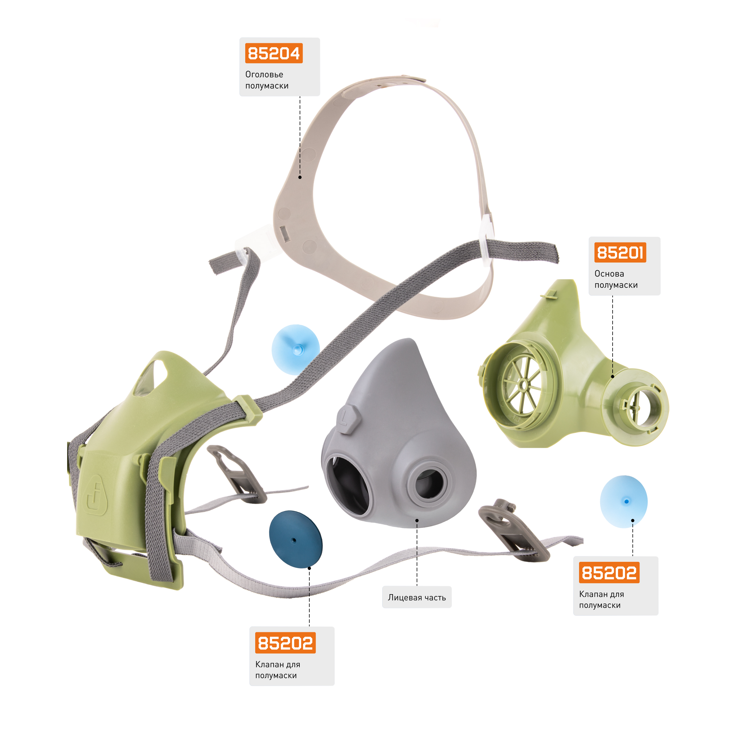 - Возможность быстро и легко снять/надеть полумаску одной рукой, без необходимости снимать другие СИЗ;