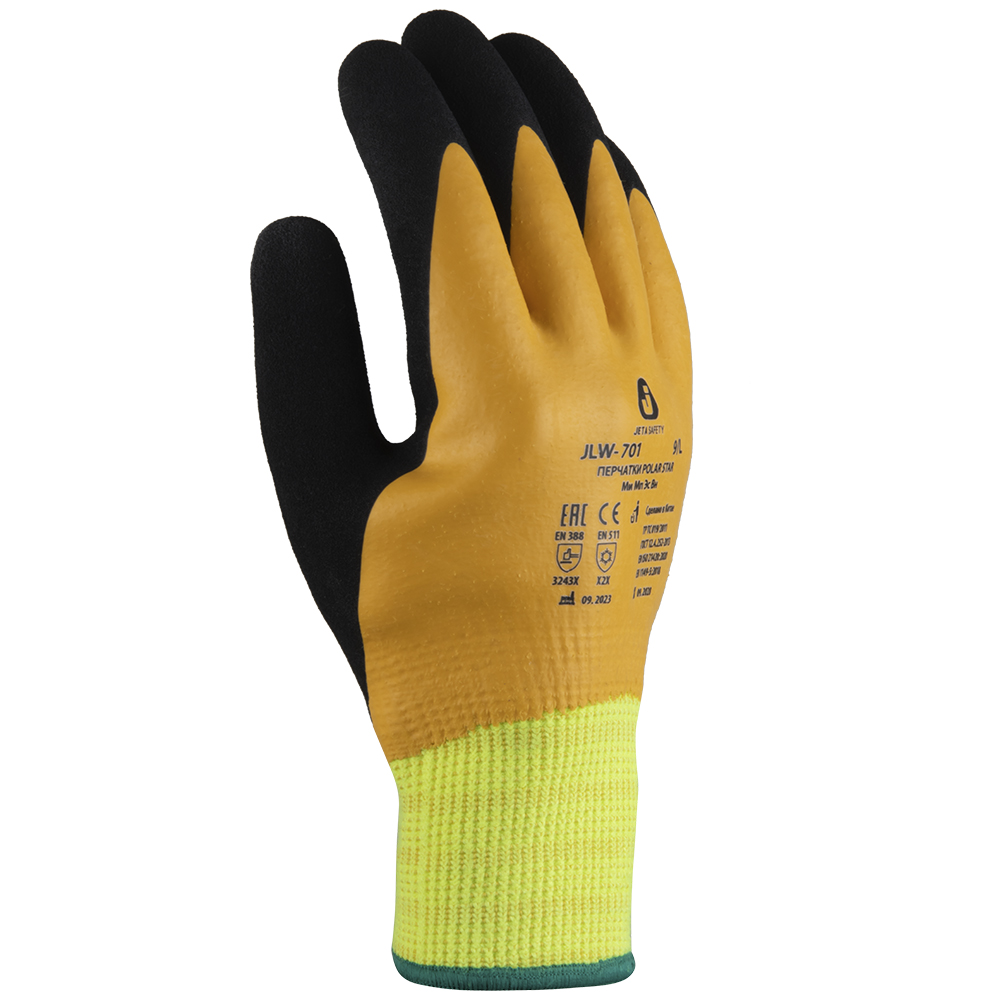 JETA SAFETY JLW-701 Polar Star – акриловые трикотажные защитные перчатки с начесом для работы на открытом воздухе при низких температурах (до –20°С). Двойное латексное покрытие: первое – полное, второе – с песочным эффектом на ладонной части для лучшего захвата по влажной и замасленной среде. Внутри – акриловый утеплитель 13 класса вязки с дополнительным слоем начеса.