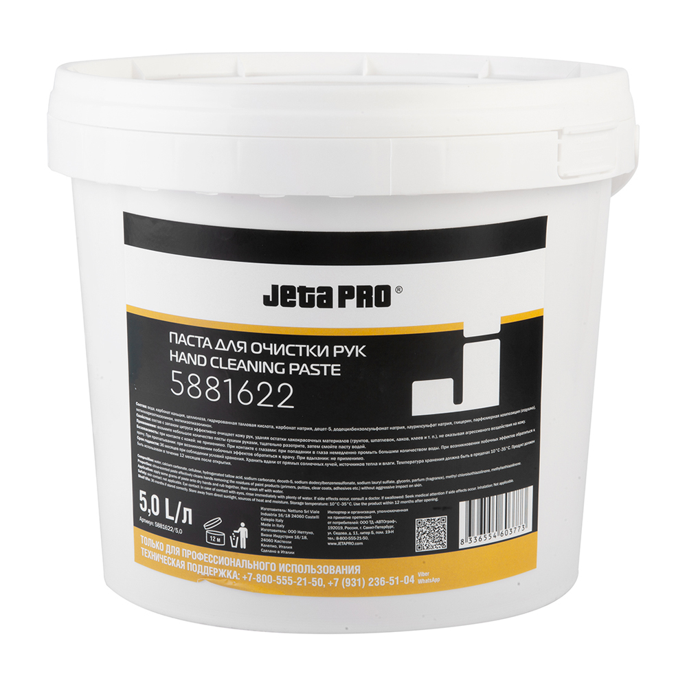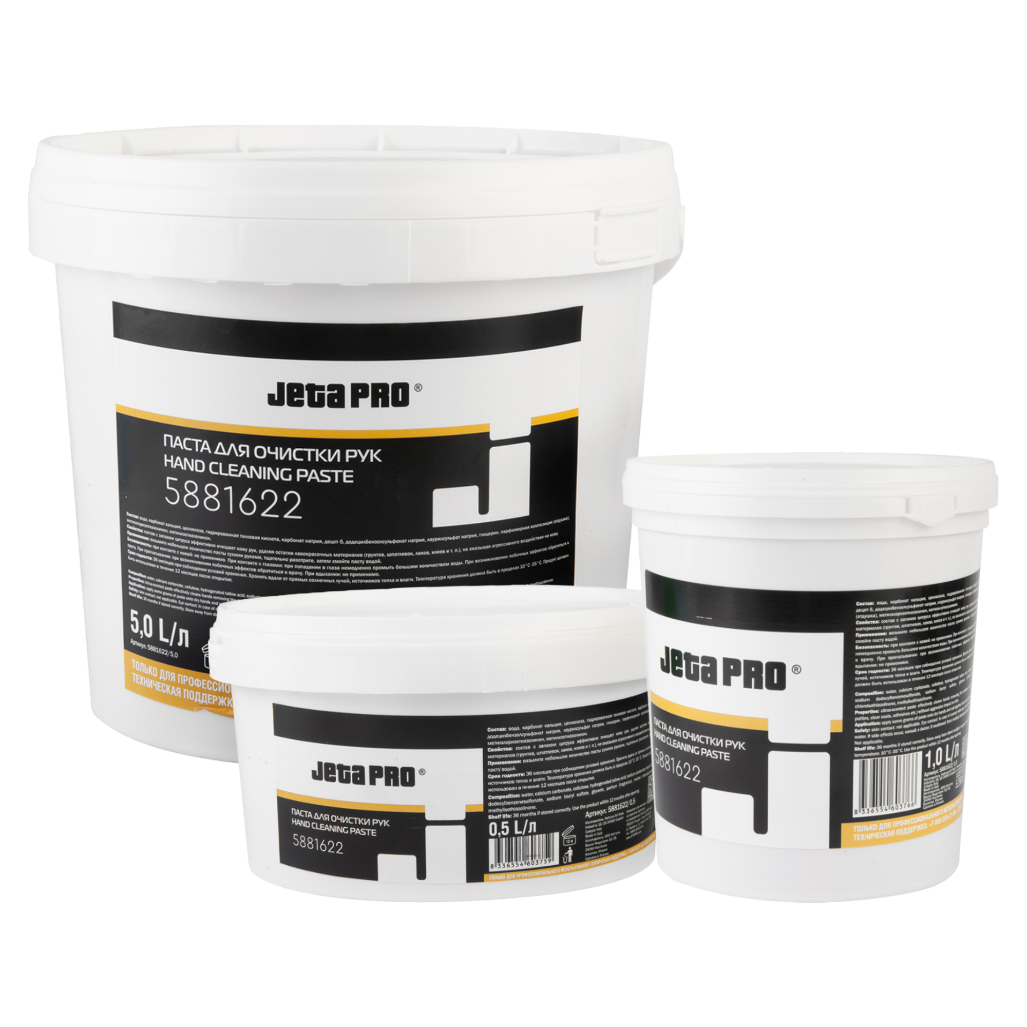 JETA PRO 5881622 – паста для очистки рук с абразивными частицами натурального происхождения. Эффективно очищает кожу рук, удаляя остатки лакокрасочных материалов и другие загрязнения (жир, масла, лубриканты, углеводородные вещества, битум, сажа, ржавчина, графит).