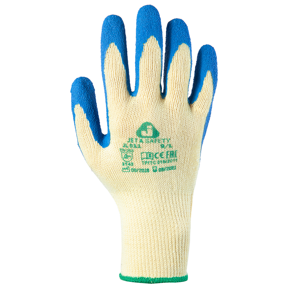JETA SAFETY JL011 – бесшовные вязанные защитные перчатки поликоттона (хлопок, полиэфир). На ладони и пальцах нанесено тонкое рельефное латексное покрытие для надежного захвата сухих и влажных предметов. Улучшенный воздухообмен обеспечивается благодаря отсутствию покрытия на тыльной стороне ладони. Эластичная манжета надёжно удерживает перчатку на запястье.
