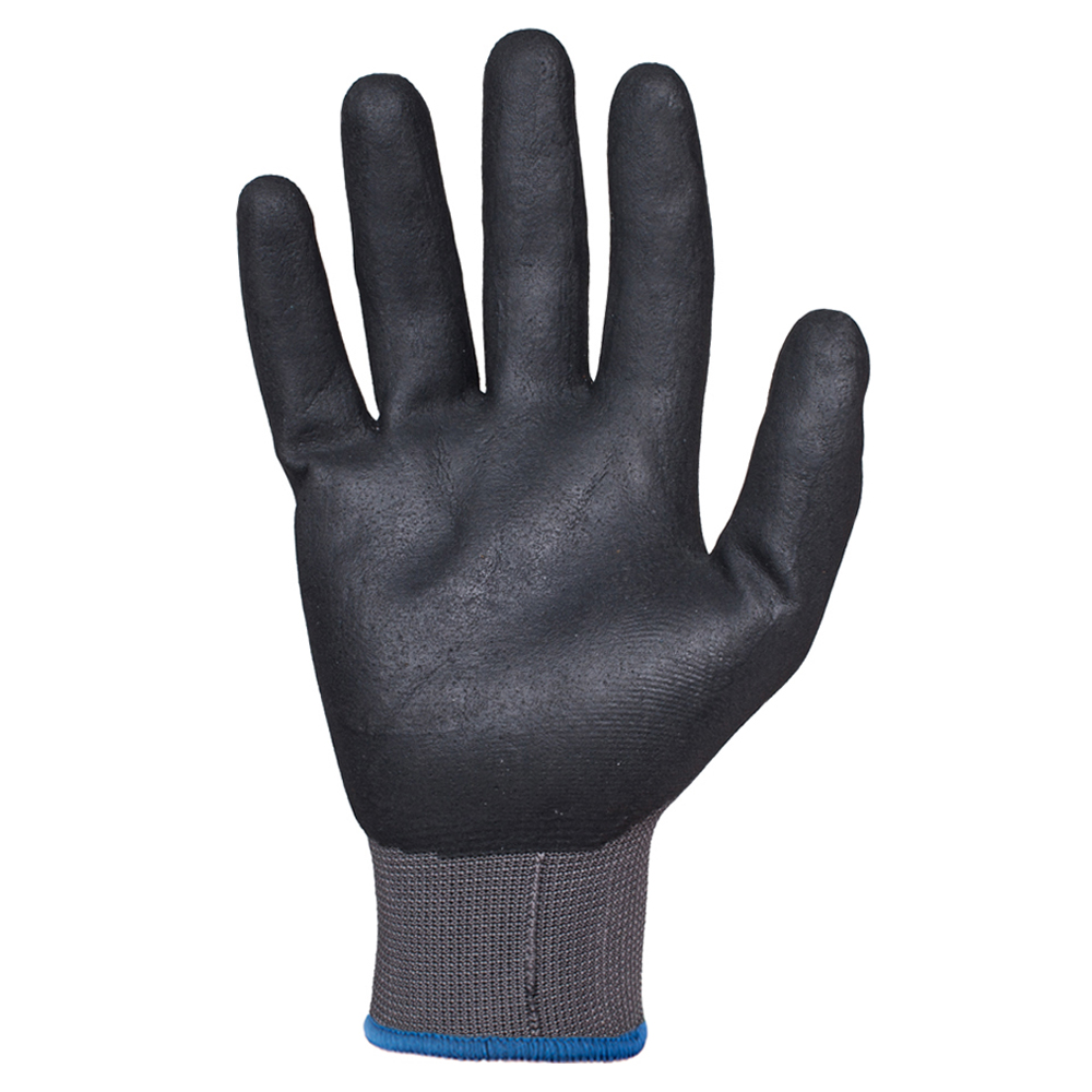 - Пенонитриловое покрытие на ладони и пальцах устойчиво при работе с жирными и масляными деталями;
