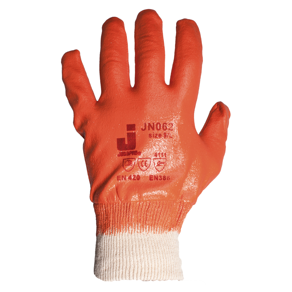 JETA SAFETY JN062 – защитные перчатки с полным маслобензостойким нитриловым покрытием. Подкладка выполнена из 100% хлопка. Вязаная манжета надежно удерживает перчатку на запястье. Высокое сопротивление изнашиванию. Очень удобные и практичные перчатки, которые идеально подойдут для всех работ, требующих легкую или среднюю механическую защиту.