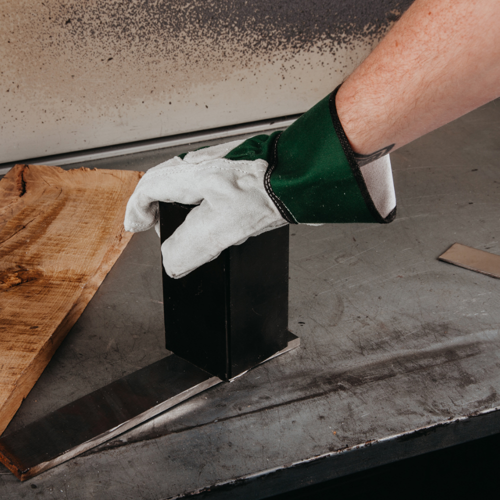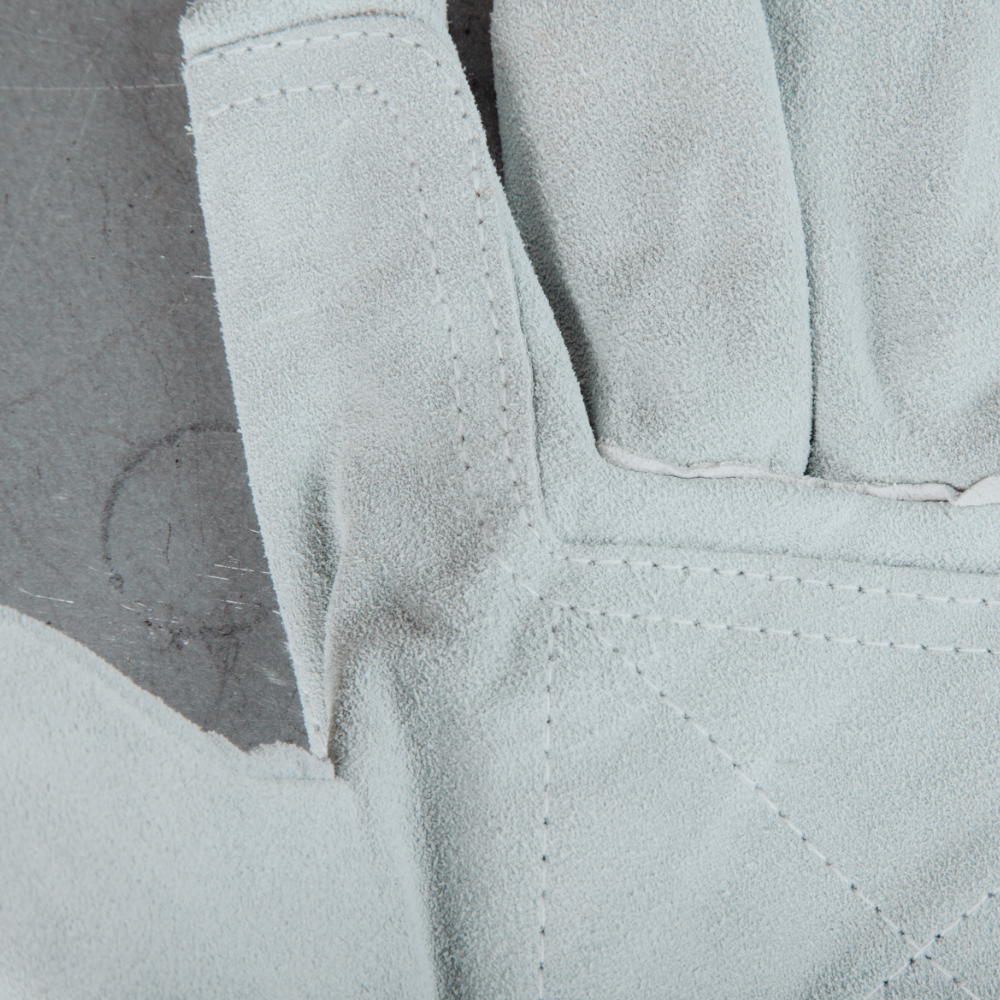 - Накладка из спилка на тыльной стороне перчатки для усиленной защиты;