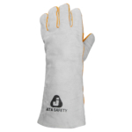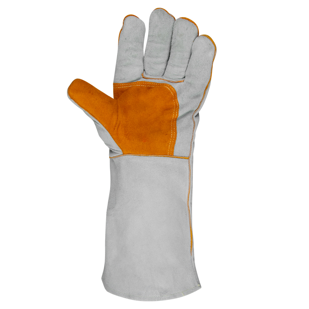 JETA SAFETY JWK1401 Ferrus Long — кожаные промышленные краги увеличенной длины (400 мм). Выполнены из спилковой кожи c подкладкой из хлопчатобумажной ткани и флиса, с дополнительной накладкой на ладони. Защищают от контакта с нагретыми поверхностями температурой до 400°С, а также от искр и брызг расплавленного металла, открытого пламени, конвективной теплоты и теплового излучения, истирания, проколов, порезов.