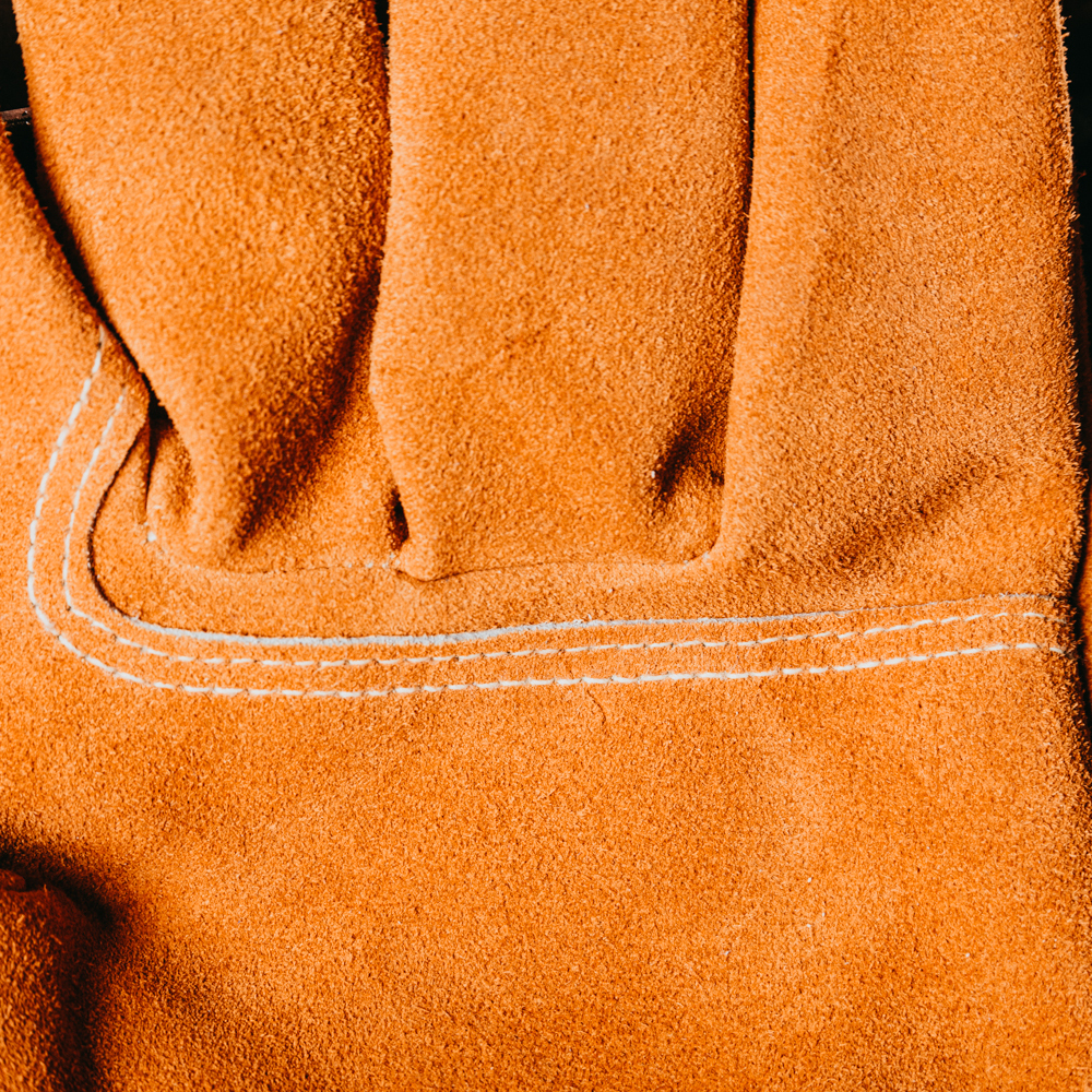 - Двойная прострочка и особый стиль пошива указательного и большого пальца, увеличивающий срок службы краг;